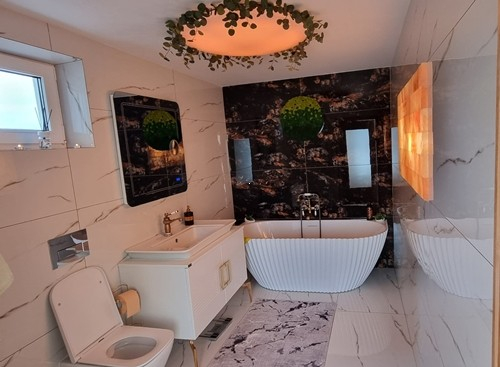 Cada freestanding lipita la perete cu dimensiuni de 170x80 cm, montaj pe pardoseala, model Pearl. Aceasta este fabricata din acril sanitar premium, culoare alb. O cada freestanding cu un design modern si elegant. Caracteristici – Pearl: - Dimensiuni – 170 x 80 x 58 cm - Material bazin – acril premium. Suprafata perfect neteda, fara pori, cu o durabilitate foarte mare. - Cazile sunt fabricate din acril – partea alba lucioasa care se vede (placa de 4 mm) plus fibra de sticla – partea de dedesubt, fibra de sticla este cea care ranforseaza cada, ii ofera rigiditate si durabiltate la utilizarea in timp. - Sifon pop-up inclus. Preaplin incorporat in peretele cazii - Suportul este inclus in corpul cazii - Greutatea cazii: 53 kg- Volum apa: 250 litri - Greutate sustinuta: 370 kg - Bateria nu este inclusa in pret. Optional se poate comanda pachetul format din cada plus baterie, finisajul bateriei este la alegere crom, negru sau gold. - Nu are lumina ambientala tip banda led sub corpul cazii Garantie – 3 ani Intra pe link-ul de mai jos si vezi o scurta prezentare cu acest model de cada: => https://youtu.be/3K6ycIgORIY Daca vrei sa vezi ce greutate sustine o cada freestanding, acceseaza link-ul: => https://youtu.be/zClm6DTMK5Q Datorita greutatii si faptului ca sunt produse fragile TRANSPORTUL IL REALIZAM IN CONDITIILE DE MAI JOS prin oricare dintre cele 3 variante: 1-In Bucuresti si Imprejurimi livram noi cu masina firmei fara vreun cost suplimentar. Plata se poate efectua in avans sau la livrare. 2-In tara livram in aproape toate localitatile ( cu mici exceptii) prin firma de transport Pallex TCE . In aceasta varianta plata se va efectua in avans integral dupa ce va confirmam stocul. Cei de la Pallex nu incaseaza plata ramburs, din acest motiv solicitam plata in avans. Livrarea se va face in 2 sau 3 zile lucratoare de la efectuarea platii. Livrarea este cu verificare /deschidere colet. Asiguram returnarea banilor sau inlocuirea produsului daca se intampla ceva la transport. TRANSPORTUL ESTE GRATUIT! 3-Puteti ridica personal de la depozitul nostru situat in Sos. Alexandriei 55 Bragadiru Ilfov. In acest caz va rugam sa ne sunati in avans ca sa fie cineva la locatie: 0765252137 NU LIVRAM PRIN CURIER CU PLATA RAMBURS. Din experienta am avut de multe ori probleme la transportul prin curier si nu ne mai dorim sa experimentam aceasta varianta de livrare. Ne puteti suna la nr. 0765252137 pentru orice intrebare legata de produs, transport, etc. Daca doresti sa vezi cazile noastre te asteptam la adresa Sos Alexandriei 55 Bragadiru Ilfov sau scrie Goodbath pe Waze si te aduce la noi. Ne gasesti de L-V 9.00-16.30 iar Sambata intre 10.00-14.30. Daca timpul sau distanta nu iti permite sa ne vizitezi aici ne ajuta putin tehnologia actuala, ne spui modelul sau modelele pe care ai vrea sa le vezi si iti putem trimite poze sau filmari prin intermediul aplicatiei Whatsapp. Lasa-ne un mesaj pe Wapp si iti trimitem filmarea cu cada dorita sau cazile sau stabilim o ora la care sa ne vedem pe camera in direct: 0765 252 137.