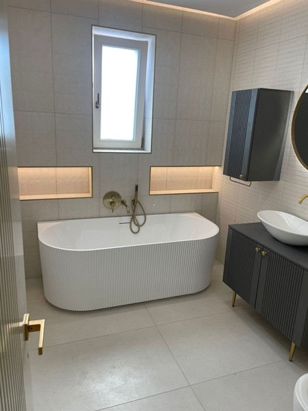 Cada freestanding lipita la perete, cu dimensiuni de 170x80 cm, montaj pe pardoseala, model Pollux. Aceasta este fabricata din acril sanitar premium, culoare alb. Alege o cada freestanding practica si eleganta. Caracteristici – Pollux: - Dimensiuni – 170 x 80 x 58 cm --- FOARTE IMPORTANT- la aceasta cada daca montajul ei se va face intre trei pereti, locul disponibil trebuie sa fie de minim 179 cm, altfel cada nu se va putea monta pe pozitie, fizic nu ai cum sa o lasi pe pozitie, cada cand se monteaza descrie o diagonala intre coltul de sus si coltul opus de jos, diagonala respectiva are 179 cm. Daca aveti intrebari va raspund cu placere 0765252137. Vezi si schita, e ultima dupa fotografii. - Material bazin – acril premium. Suprafata perfect neteda, fara pori, cu o durabilitate foarte mare. - Cazile sunt fabricate din acril – partea alba lucioasa care se vede (placa de 4 mm) plus fibra de sticla – partea de dedesubt, fibra de sticla este cea care ranforseaza cada, ii ofera rigiditate si durabiltate la utilizarea in timp. - Culoare - Alb - Locuri – 1 loc - Forma - dreptunghiulara - Sifon pop-up inclus. Preaplin incorporat in peretele cazii - Suportul este inclus in corpul cazii - Greutatea cazii: 53 kg - Volum apa: 349 litri - Greutate sustinuta: 370 kg - Bateria nu este inclusa in pret. Optional se poate comanda pachetul format din cada plus baterie, finisajul bateriei este la alegere crom, negru sau crom. - Nu are lumina ambientala tip banda led sub corpul cazii Garantie – 3 ani Intra pe unul dintre link-urile de mai jos si vezi o scurta prezentare cu acest model de cada: => https://youtu.be/nJJ8HrMc7jQ => https://youtu.be/I7YWPa0SmoI => https://youtu.be/N4AqKa0fX4c Daca vrei sa vezi ce greutate sustine o cada freestanding, acceseaza link-ul: => https://youtu.be/zClm6DTMK5Q Datorita greutatii si faptului ca sunt produse fragile TRANSPORTUL IL REALIZAM IN CONDITIILE DE MAI JOS prin oricare dintre cele 3 variante: 1-In Bucuresti si Imprejurimi livram noi cu masina firmei fara vreun cost suplimentar. Plata se poate efectua in avans sau la livrare. 2-In tara livram in aproape toate localitatile ( cu mici exceptii) prin firma de transport Pallex TCE . In aceasta varianta plata se va efectua in avans integral dupa ce va confirmam stocul. Cei de la Pallex nu incaseaza plata ramburs, din acest motiv solicitam plata in avans. Livrarea se va face in 2 sau 3 zile lucratoare de la efectuarea platii. Livrarea este cu verificare /deschidere colet. Asiguram returnarea banilor sau inlocuirea produsului daca se intampla ceva la transport. TRANSPORTUL ESTE GRATUIT! 3-Puteti ridica personal de la depozitul nostru situat in Sos. Alexandriei 55 Bragadiru Ilfov. In acest caz va rugam sa ne sunati in avans ca sa fie cineva la locatie: 0765252137 NU LIVRAM PRIN CURIER CU PLATA RAMBURS. Din experienta am avut de multe ori probleme la transportul prin curier si nu ne mai dorim sa experimentam aceasta varianta de livrare. Ne puteti suna la nr. 0765252137 pentru orice intrebare legata de produs, transport, etc. Daca doresti sa vezi cazile noastre te asteptam la adresa Sos Alexandriei 55 Bragadiru Ilfov sau scrie Goodbath pe Waze si te aduce la noi. Ne gasesti de L-V 9.00-16.30 iar Sambata intre 10.00-14.30. Daca timpul sau distanta nu iti permite sa ne vizitezi aici ne ajuta putin tehnologia actuala, ne spui modelul sau modelele pe care ai vrea sa le vezi si iti putem trimite poze sau filmari prin intermediul aplicatiei Whatsapp. Lasa-ne un mesaj pe Wapp si iti trimitem filmarea cu cada dorita sau cazile sau stabilim o ora la care sa ne vedem pe camera in direct: 0765 252 137.